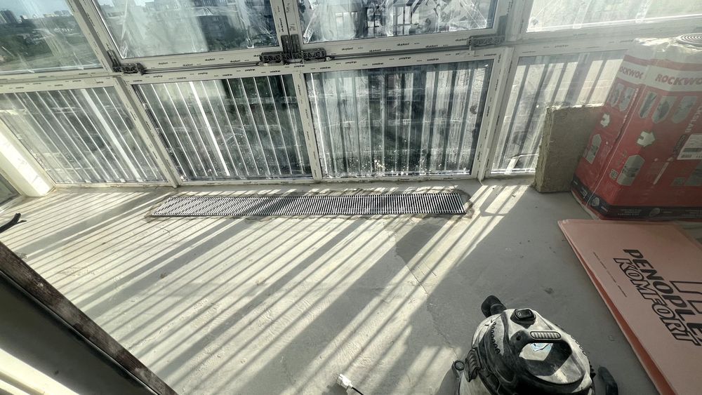 Два балкони, кожен по 12м2, утеплені знизу і зверху 10 мм термо-панелями в нахльост двома шарами, периметр під склінням утеплений з використанням спеціальних термоблоків, виготовлених з полістеролбетону, на балконах встановлені 4х метрові конвектори Carrera, плюс електричний теплий , на балконах зроблено освітлення (верхнє та нижнє), розетки, вимикачі, встановлені гаки для крісел-качалок, стелі з гіпсокартону з люками-ревізією для системи вентиляції та зміни фільтрів.