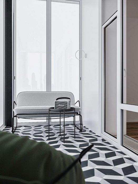 На балконах встановлені панорамні 3-х шарові утеплені склопакети, із заводським напилюванням тепло-відбивних складів і тонуванням, безрамкові (штульпові) системи відкриття (розсування) вікон (при відкритті більше половини простору складається і не закриває простір), системи вхідних дверей з усіх кімнат на балкони також замінені на розсувні для внутрішньої ергономії простору.