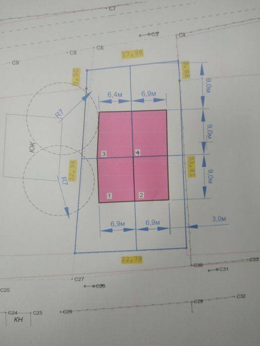 площа по документах 750мКв, з урахуванням червоних ліній 1000мКв