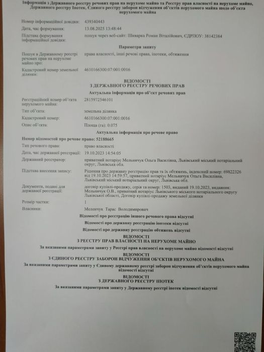 | Земельна ділянка: |