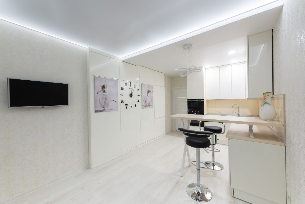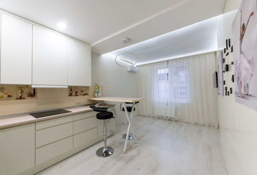 Дизайнерский ремонт в стиле неоклассики в светлых, теплых тонах, новая мебель и бытовая техника ведущих мировых производителей (3 ТV, 2 кондиционера, вся кухонная техника: посудомоечная машина, варочная поверхность, духовка, вытяжка, встроенная микроволновая печь). Цифровое ТВ, WI-FI, скоростной интернет. Закрытый двор, большая детская площадка. В комплексе есть подземный паркинг.