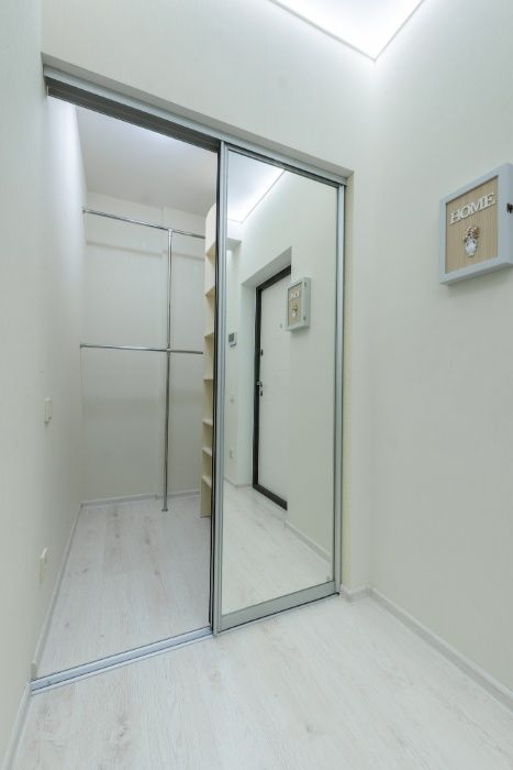 Комната 29,1 кв. м разделена на две зоны: гостиная и спальня, кухня 17,5 кв. м, гардеробная, санузел. В санузле подогрев пола, бойлер, современная стиральная машина со встроенной системой сушки белья.