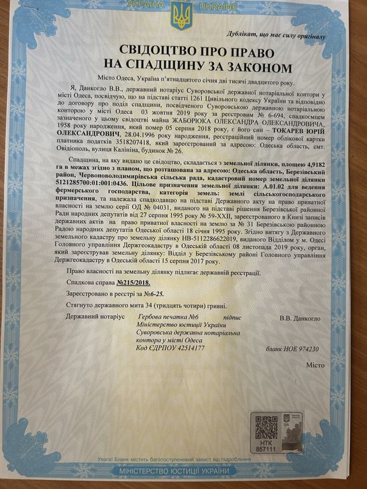 Переоформлення у нотаріуса ,бажано в місті Одесса.