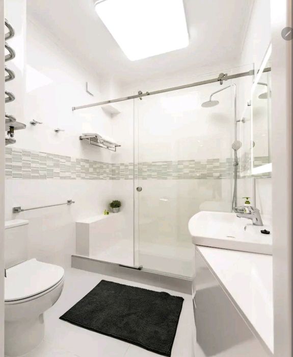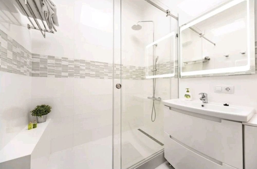 - ванна кімната з бойлером та італійським душем, фен, дзеркало з лед-світлом, засоби гігієни