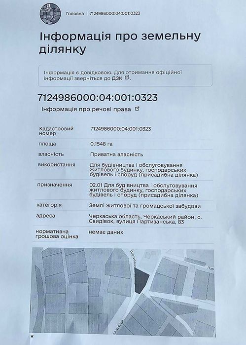 | Кадастровий номер: | 7124986000:04:001:0323 |