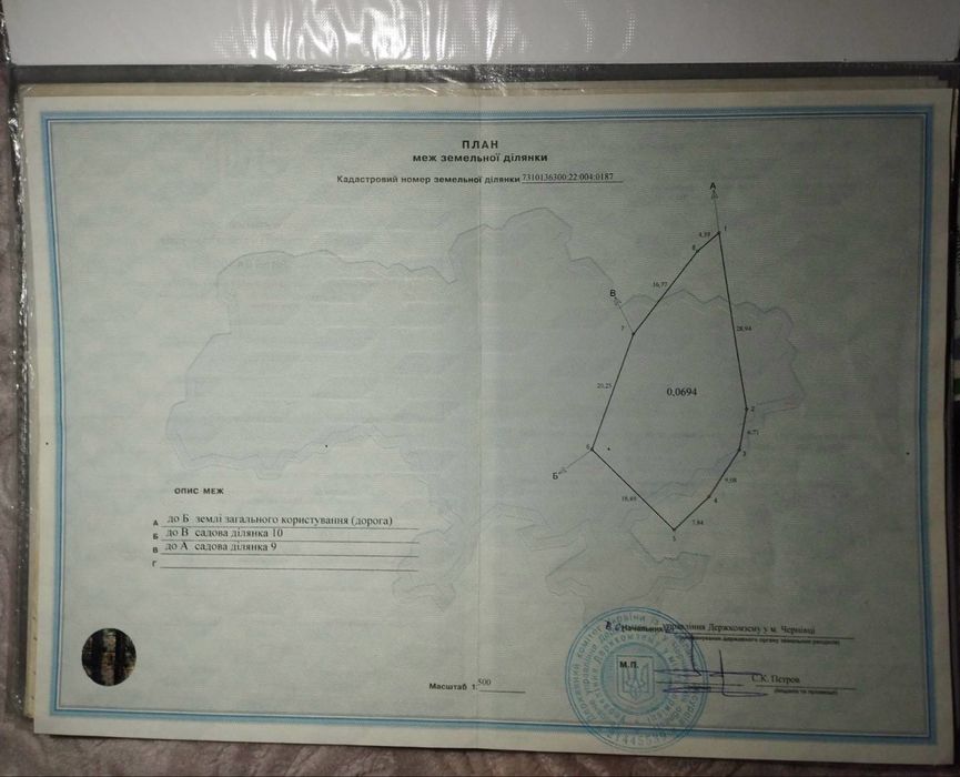 | Земельна ділянка: |