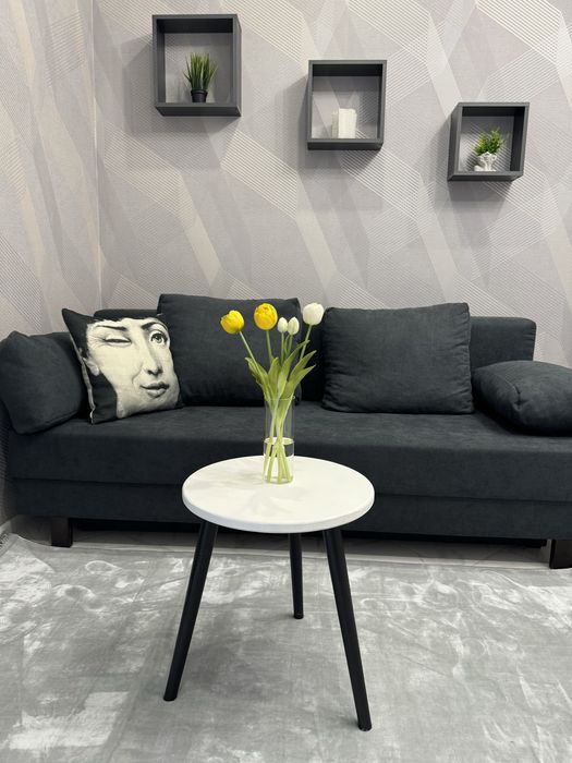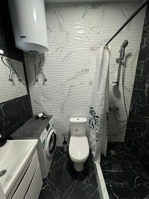 Вся новая мебель, много мест хранения: раскладной, 2 х спальный диван с нишей, кровать с подьемным механизмом( лежачий шкаф), зеркальный, в коридоре высокий шкаф 180 см с выдвижными ящиками и полками. Телевизор, кондиционер зима- лето , стиральная машинка, бойлер, и вся кухонная техника