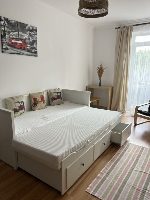 У квартирі є ремонт, зручне розкладне ліжко IKEA та інші меблі IKEA.