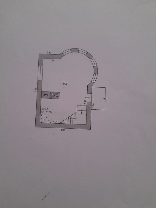 1 поверх - 24.5 м2, висота 2.55 м.