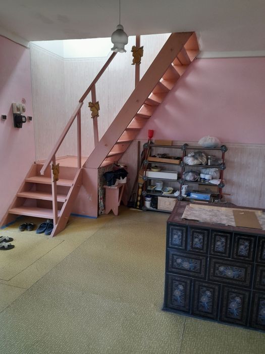 Деревʼяні сходинки між поверхами.