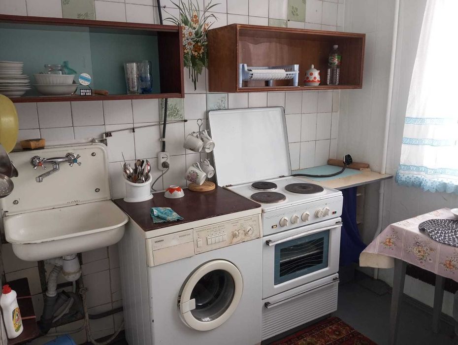 Есть все необходимое спальное место, кухня, стиральная машина, холодильник, электроплита, ванна