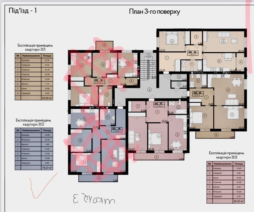 3 поверх, трьохкімнатна.