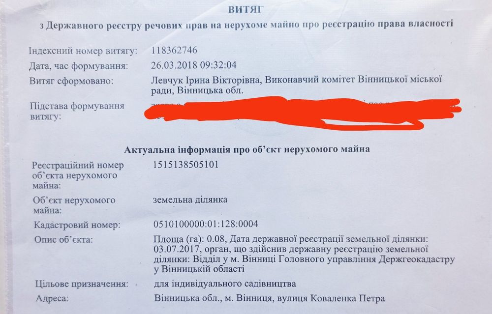 | Земельна ділянка: |