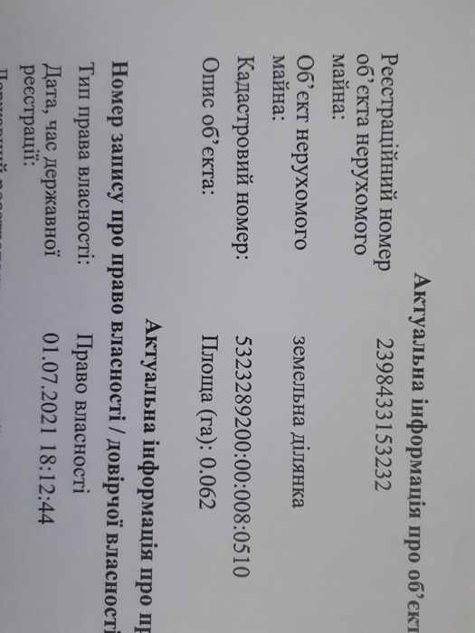 | Земельна ділянка: |