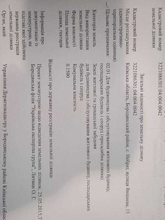 Продаж Земельної ділянки; Продаж Земельної ділянки для будівництва загальною площею 0.15га (15 сот) газ,світло,вода знаходяться поруч розташовані Ліса,Озера,Садочок,Школа,Магазини,Автобусні зупинки рух маршруток кожну година Києв(Святошено)смт Бородянка вокзал під кожну електричку Всі документи на руках Загальна сума 10000ує Від Власника тел 09******09 с.Нове Залісся