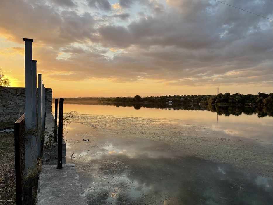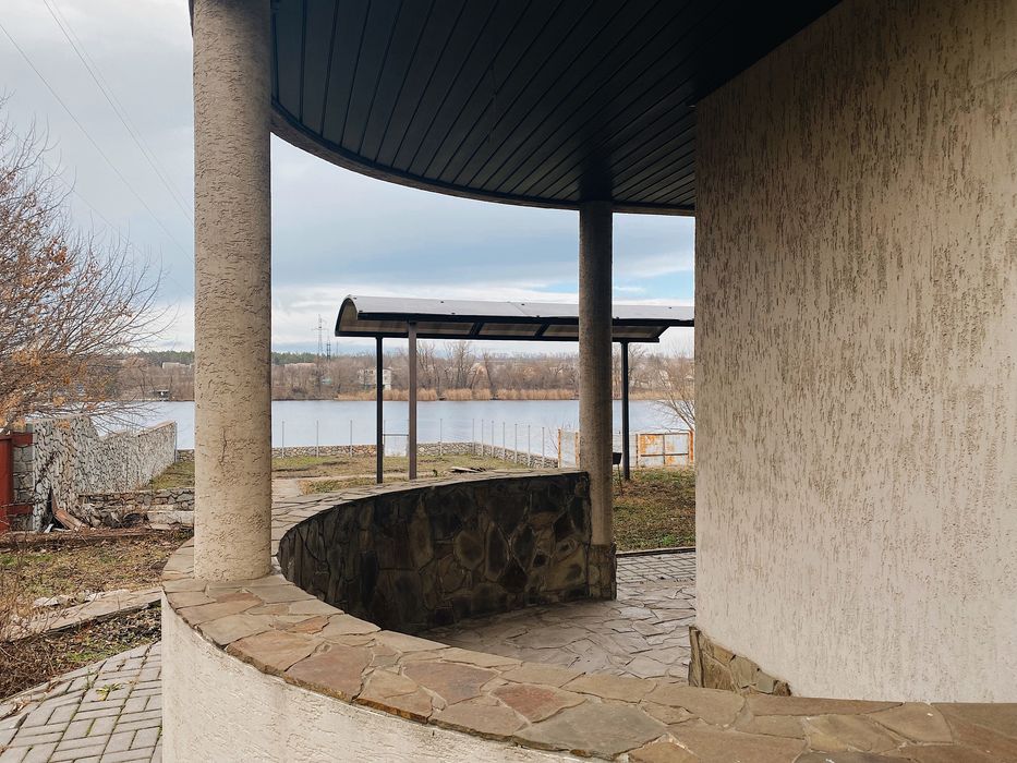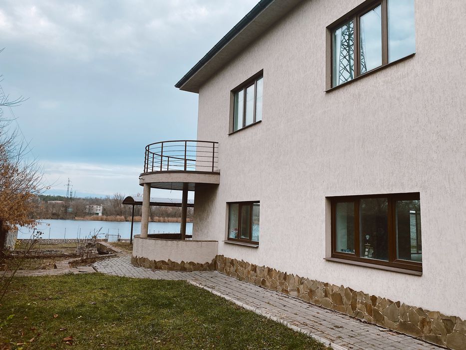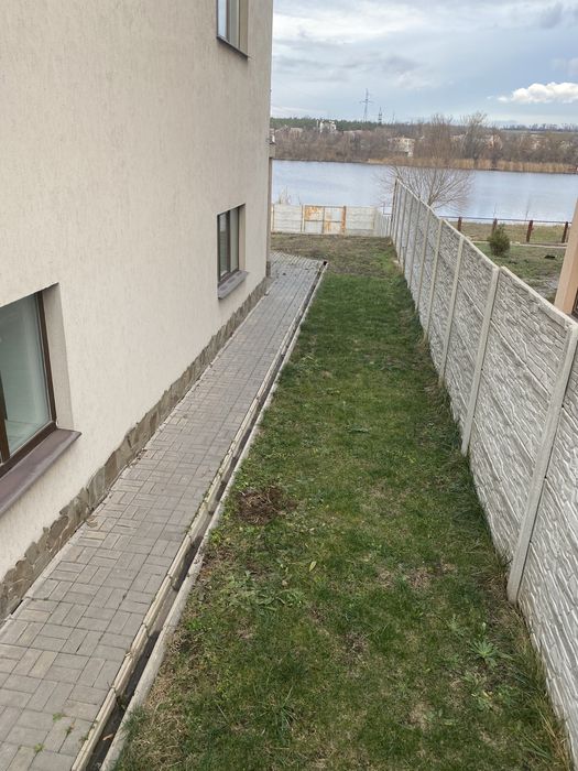 Сделан уже частично ремонт на первом этаже . Большая территория с выходом в реку. До Днепра 5 минут на водном транспорте. Место под машину, нижняя часть территории можно так же использовать для парковки . Территория 8 соток.
