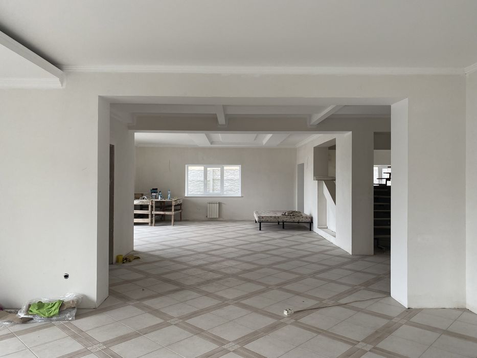 Дом полностью готов под ваш ремонт, стены готовы, потолки на первом этаже покрашены.