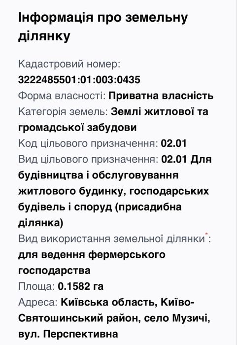 | Земельна ділянка: |