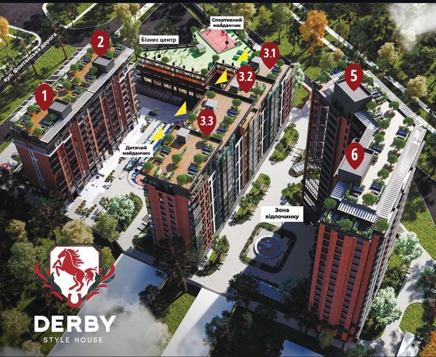 Продаётся квартира в городе Одесса, на 4ой Станции Большого Фонтана по адресу Фонтанская Дорога 6 в ЖК Дерби Style House с видом на парк и ипподром, сдача планируется в конце 2026 года.