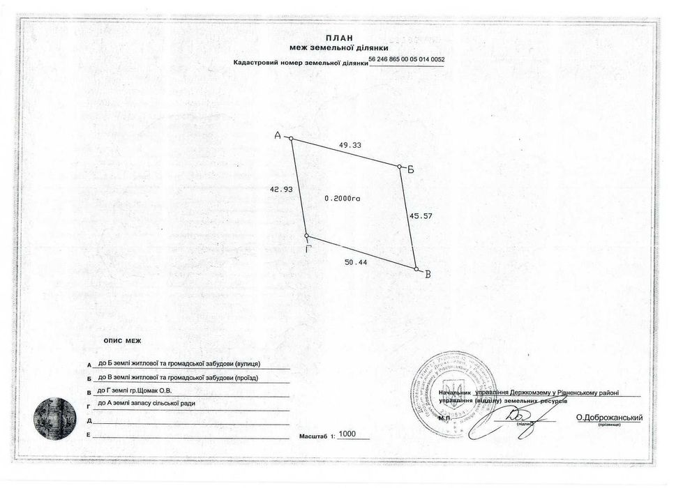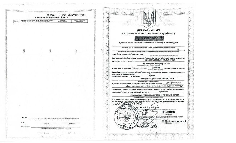 | Земельна ділянка: |