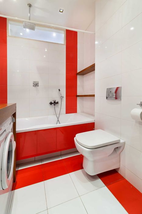 Велика ванна кімната з теплою підлогою.