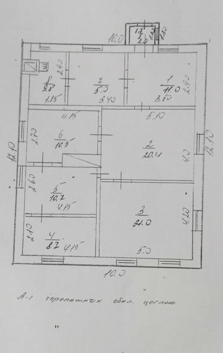 Будинок 99,1 кв. м.: 5 житлових кімнат (3 спальні та 2 великі вітальні), прихожа, кухня, котельна. Збудований у 1990 році. Стіни з черепашнику, облицьовані делікатною цеглою, наявне електро- та газопостачання, підлога дерев'яна. Стан - потребує косметичного ремонту. Дуже теплий.