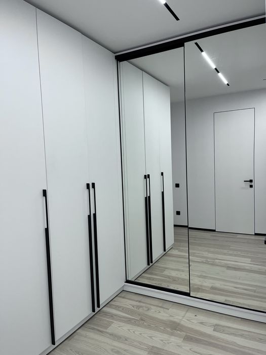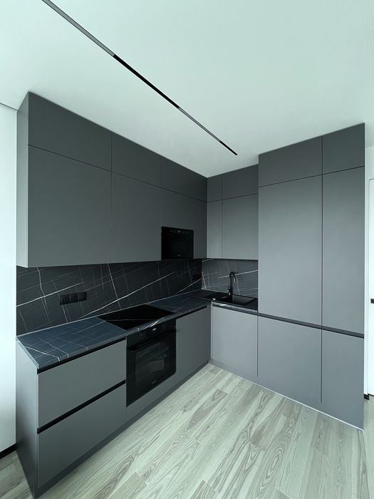 вбудована техніка: мікрохвильовка, духовий шкаф, посудомийка, індукційна плита, витяжка, холодильник.