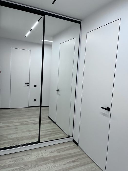 Двері прихованого монтажу 2,3 м, паркетна дошка ясень білий,