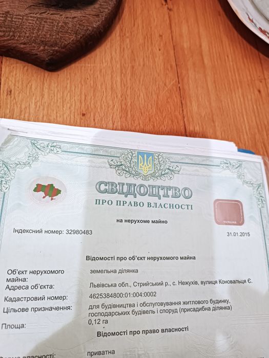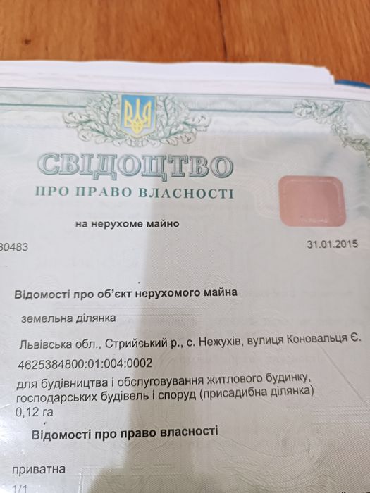 Продається земельна ділянка; Земельна ділянка для будівництва і обслуговування житлового будинку по господарських будівель і споруд. Електроенергія вже підведення до ділянки . С. Нежухів розташоване біля м.Стрий 5км. Через село проходить траса Стрий - Дрогобич. Поряд з цією ділянкою розташована ще одна зем.ділянка 12 соток, можна розглядати продаж двох