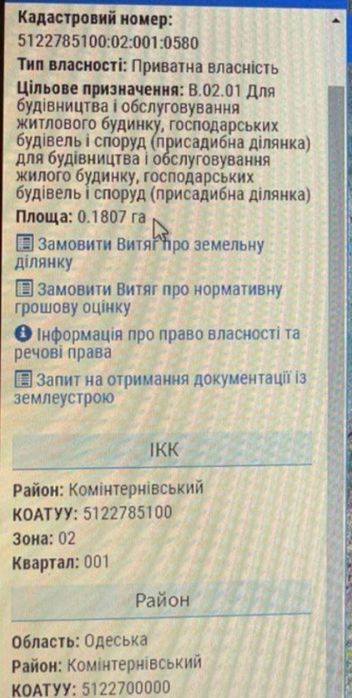 Ділянка під забудову , в найближчому передмісті; Земельна ділянка 18 соток , в передмісті , 10 хв від Одеси. Село Іванове ( Свердлово ) . Ділянка на центральній асфальтованій вулиці , по вулиці є газ , світло ,вода . Зроблена геодезія і геологія . Без торгу .