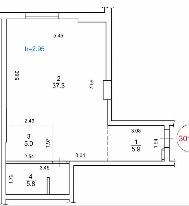 - высота потолка – 3,1 м