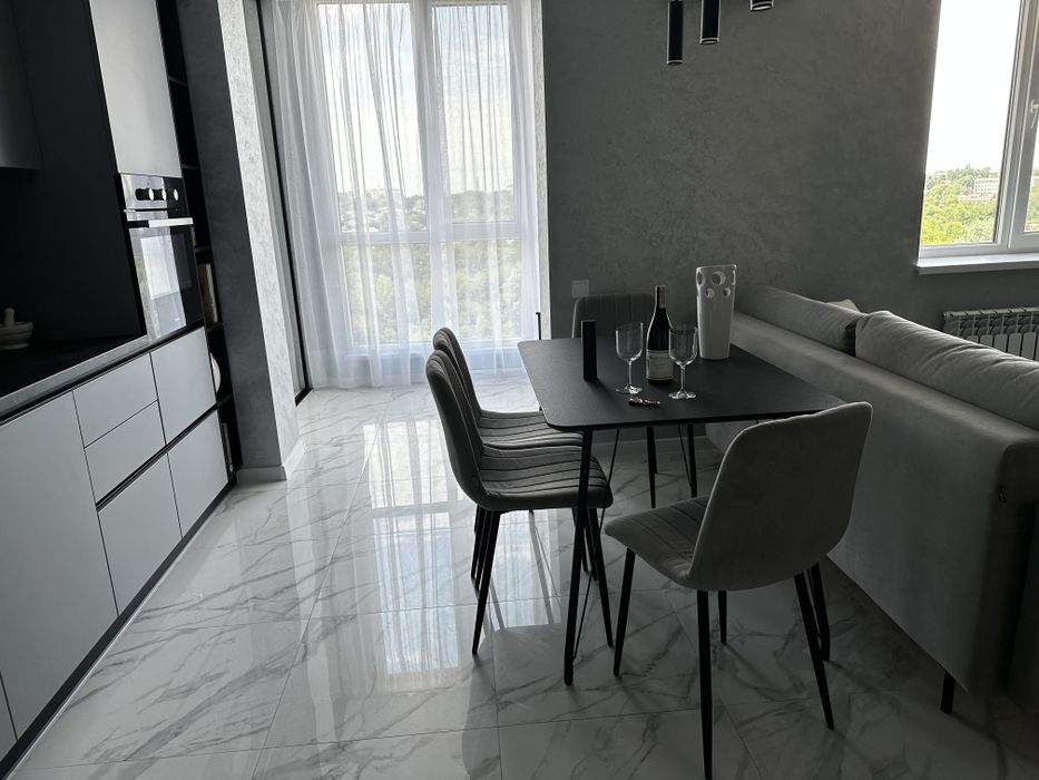Шевченківський; Продам квартиру в ЖК Щасливый-1 от собственника; Квартира с современным и стильным ремонтом, дизайнерской мебелью (фурнитура Blum с доводчиками, качественные материалы европейских производителей), полностью укомплетована необходимой техникой (встроенный холодильник, посудомоечная машина, духовой шкаф, газовая плита, микроволновая печь, телевизор, кондиционер) .