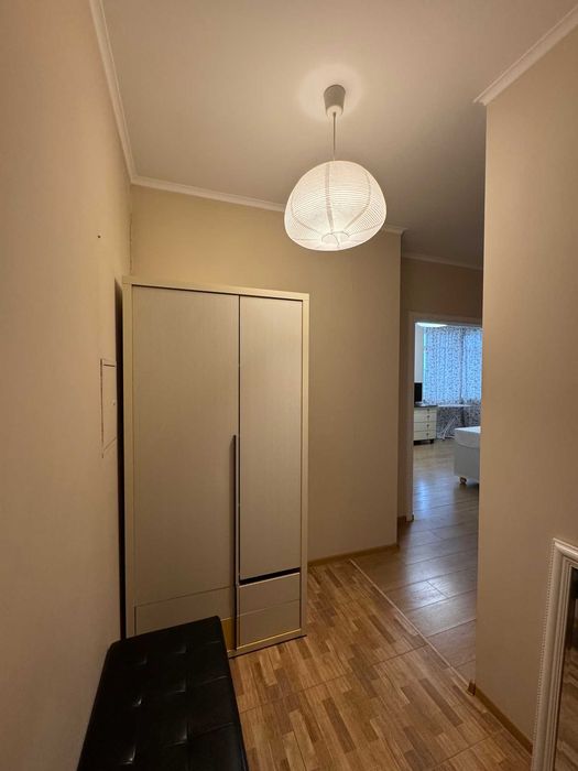 3комплектована всією необхідною технікою і меблями, а саме: двоспальне ліжко, 2 шафи, кондиціонер, телевізор, бойлер, пральна машина, духова шафа, варильна поверхня, холодильник, витяжка.