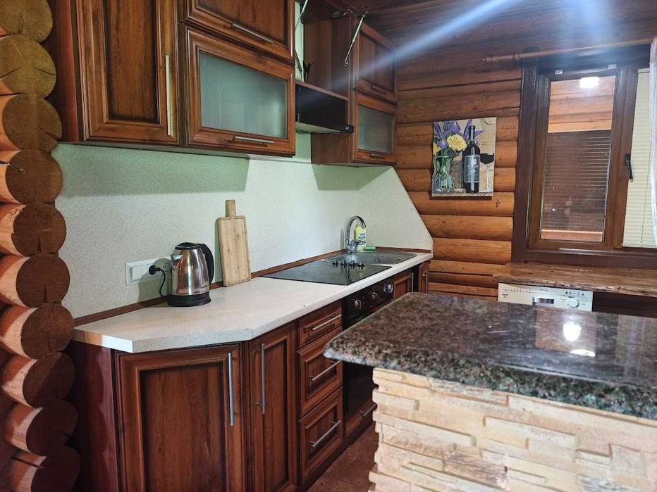 160 кв.м. з брусу (карпатська смерека) - 4 спальні, два санвузли на 1 та 2 поверсі, дві великі вбудовані шафи, металопластикові вікна.