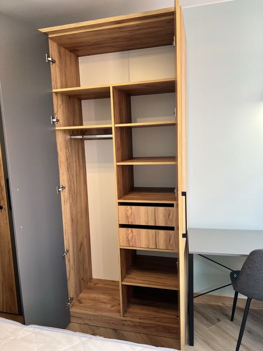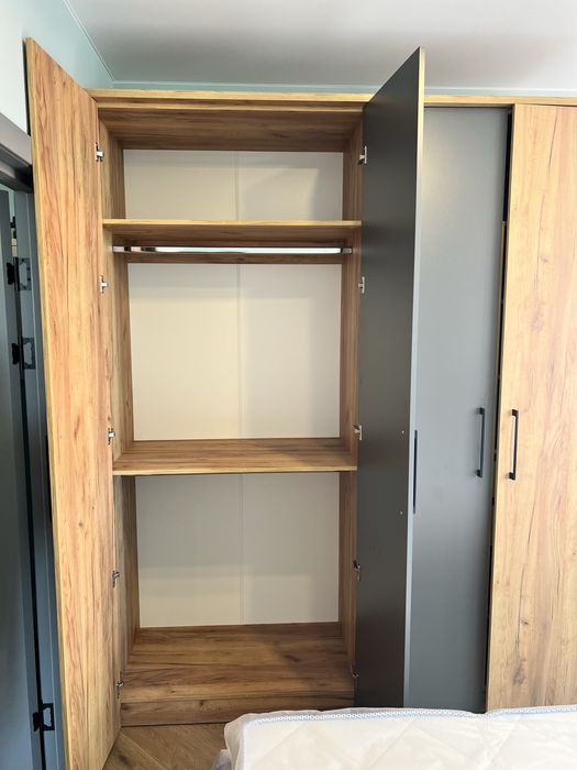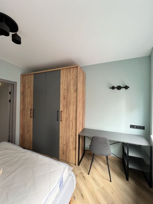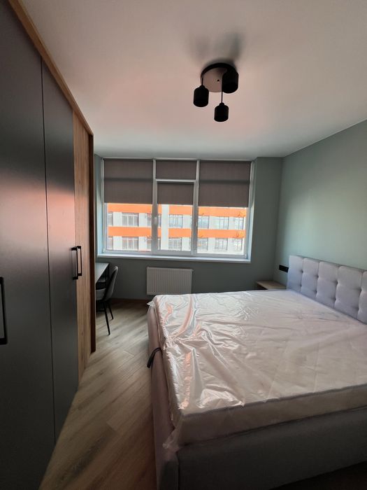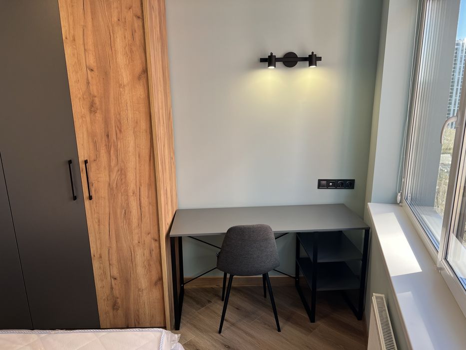 Спальня з великим ліжком з величезною нішою, двосторонній ортопедичний матрас, обладнане робоче місце з додатковими освітленням, велика містка шафа, тумби приліжкові з розетками, ролети на вікнах, кондиціонер.