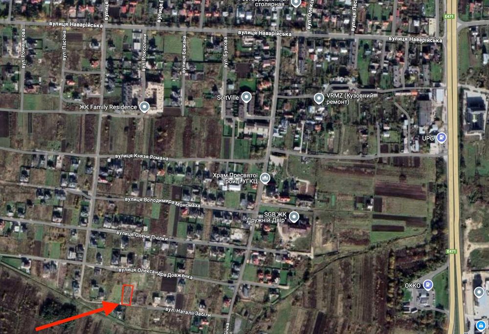 Сусіди: з лівої сторони готовий котеджі(видно на фото, на google картах цих забудов ще нема)