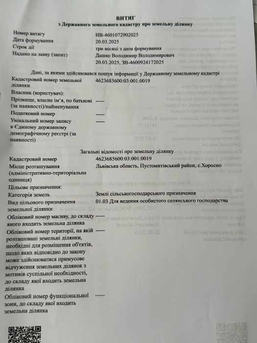 | Земельна ділянка: |