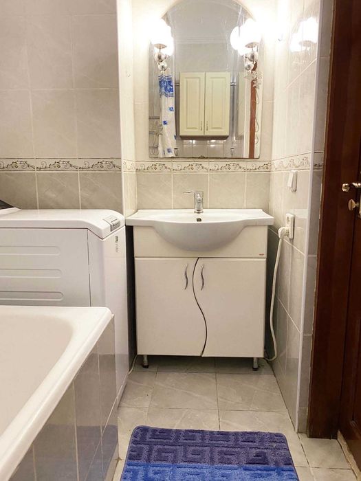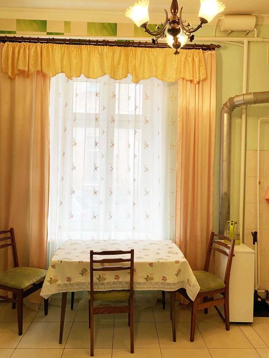Загальна площа 63 кв.м., кімнати суміжні: вітальня 26 кв.м., з неї вхід у спальню 20 кв.м., висота стелі 3.5м. Санвузол суміщений (туалет, умивальник, ванна). Правильне планування. Кухня 12 кв.м.