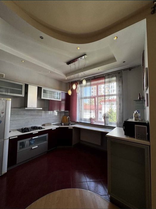 Галицький; Оренда квартири; Оренда квартири від власника (вул.Мечникова, Личаківський район). Простора світла трьох-кімнатна квартира, з двома ізольованими спальнями (22 м.кв, 18 м.кв) і кухня-студія (33м.кв), хол 10 м.кв, окремо ванна з душем (7 м.кв), туалет (2 м.кв), гардеробна (3 м.кв). Загальна площа 96 м.кв. Високі стелі (3.1 м), елітний зелений район, два балкони, під’їзд закривається, своя прибудинкова територія. В квартирі все необхідне для проживання, меблі, техніка (телевізор, пралька, посудомийка, духовка, холодильник, мікрохвильовка), інтернет. Зроблений якісний ремонт, встановлено новий економний котел Вісман. Квартира на 5 поверсі п’ятиповерхового будинку, за рахунок чого дуже світла і з прекрасною панорамою на місто. Будинок є якісною новобудовою «Карпатбуд», без ліфту, з паркомісцем у дворі, поруч магазини, дитячі садочки, до центру міста пішки 20 хв, на авто 5 хв, поруч є трамвайна зупинка з трамваєм, який курсує в центр міста, а також зупинка тролейбусів і маршрутних автобусів в різні кінці міста.