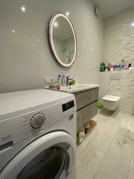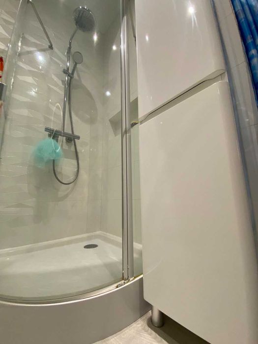 Ванная комната: стиральная машина Electrolux с функцией сушки белья, ванна Villeroy&Boch (Германия), душевая кабина (Италия), унитаз Geberit (Германия)