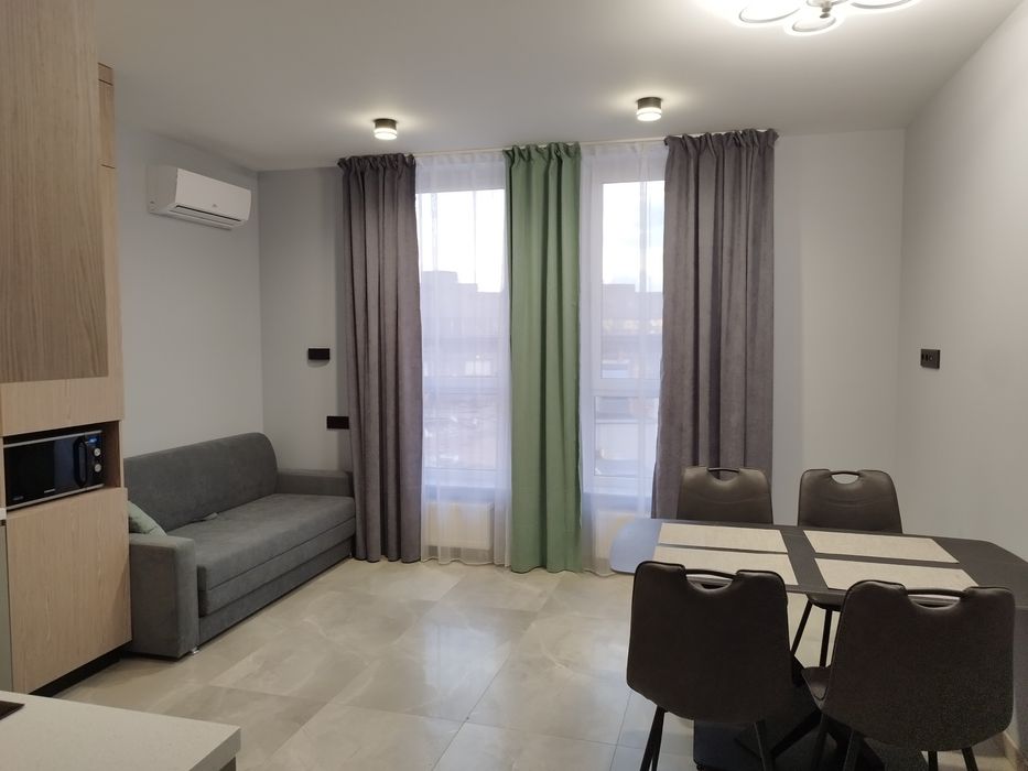Святошинський; Здається 1-к квартира ЖК нивки парк; Від власника, новобудова, ЖК нивки парк з дизайнерським ремонтом. Монолітно-каркасний будинок. Панорамні вікна. Поруч метро Нивки, від під'їзду 20 м до Сільпо, нова пошта, стоматології, аптеки, медичний центр Кабімед, лабораторії, Макдональдс, банки, кав'ярні, дитячі майданчики, автобусні зупинки. Закрита територія з охороною, паркінг. В квартирі встановлена сучасна система захисту від потопу Ajax WaterStop. Можливість керування з телефону системами відеоспостереження, домофон і антизатоплення.