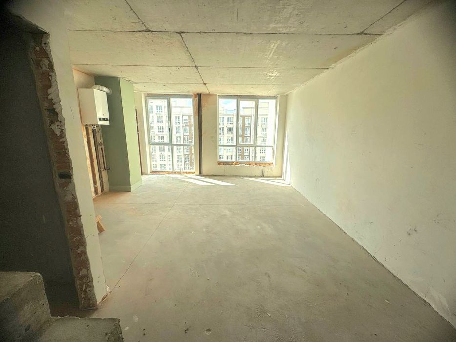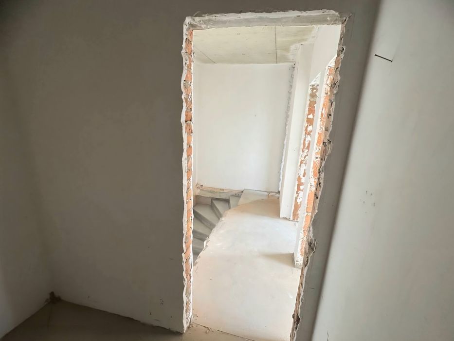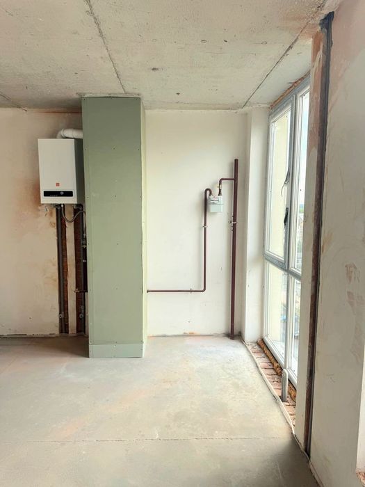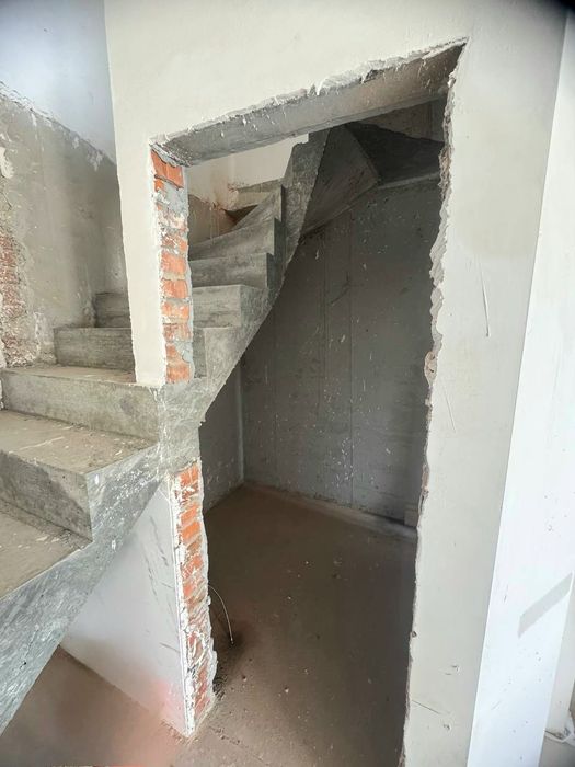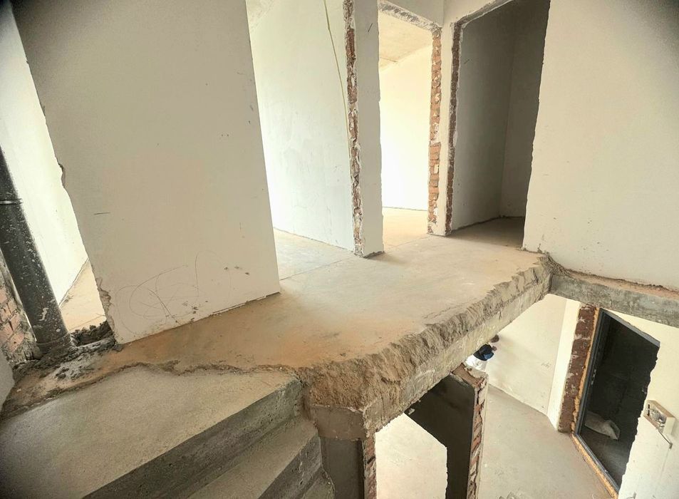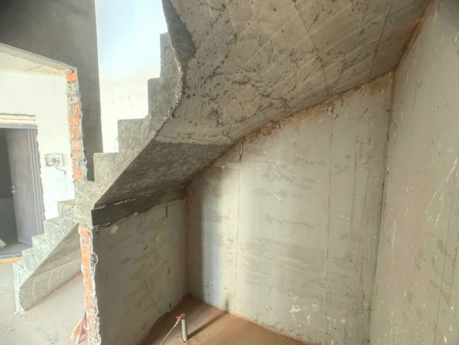 В квартирі виконані штукатурні роботи, стяжка, залиті бетонні сходи. Встановлений двухконтурний газовий котел та закладні під радіатори опалення. Зроблено перепланування.