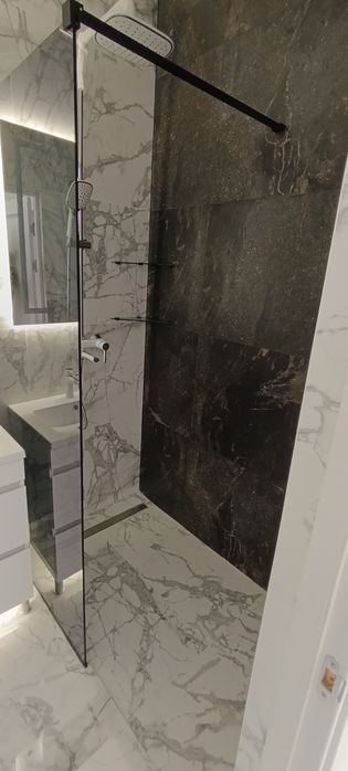 - Сучасний душ зі скляною перегородкою;