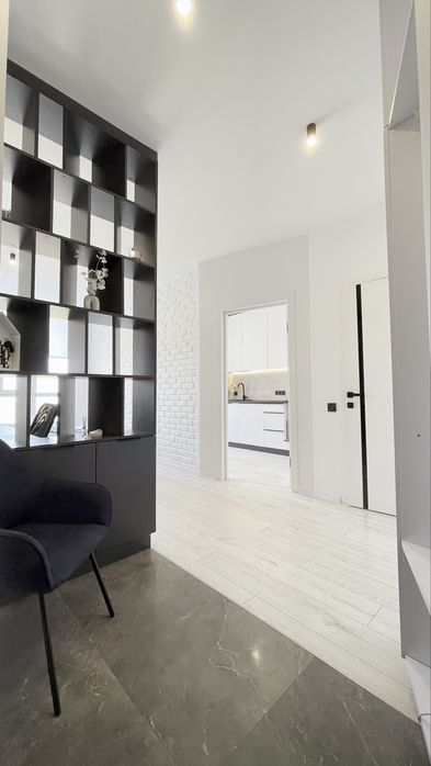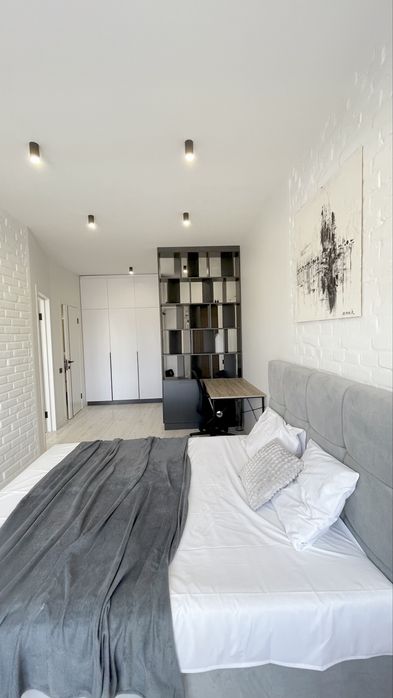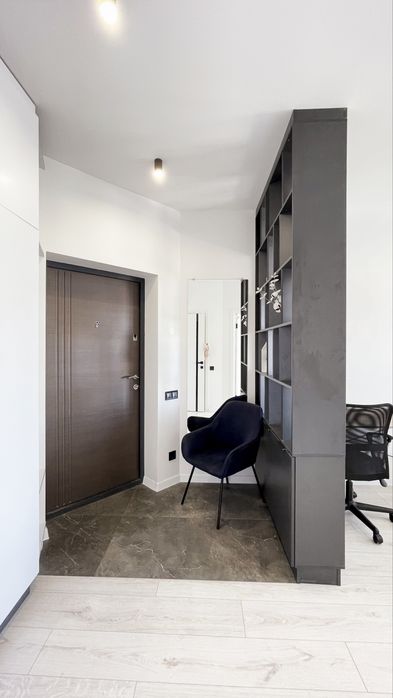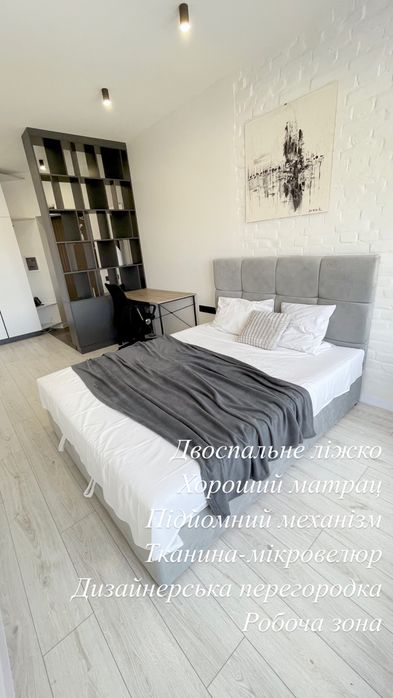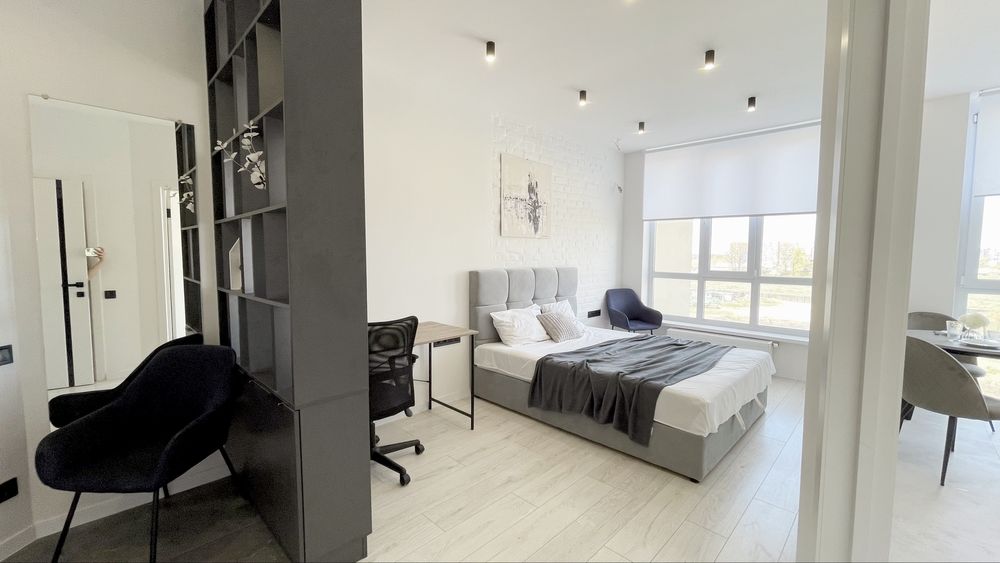 Квартира дуже вдало зонована. Спальня зона, робоча, прихожа, зона зберігання речей. Окрема кухня.