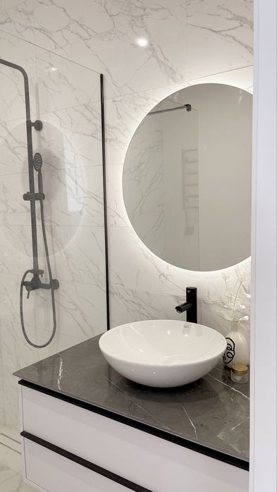 Гігієнічний душ, тепла підлога в санвузлі, душова стійка, дзеркало з підсвіткою.