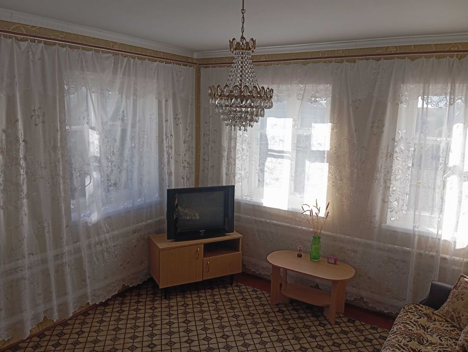 загальна площа 84 квадратних метри. У будинку є усі можливі зручності (газове опалення, централізоване водопостачання, гаряча вода, ванна та туалет, підвал), зручний заїзд авто з вулиці через металеві ворота, у дворі є високий цегляний гараж на велике авто з оглядовою ямою, окремий глибокий бетонний погреб, город, плодові дерева, загальна площа домоволодіння - 10 соток, ціна 7500 грн + комунальні послуги