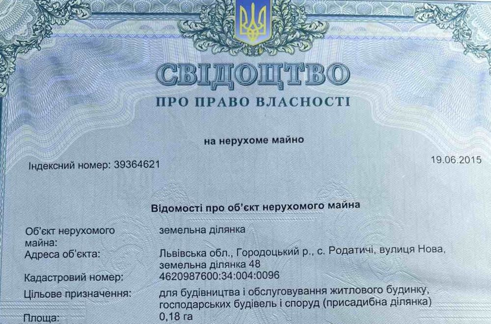 Ділянка під забудову; Продам земельну ділянку 18 сотих з дуже зручним місцем розташування поруч знаходяться світло,газ с.Родатичі вул.Нова, під будівництво будинку в зажитому районі зручний доїзд більше деталей по телефону.