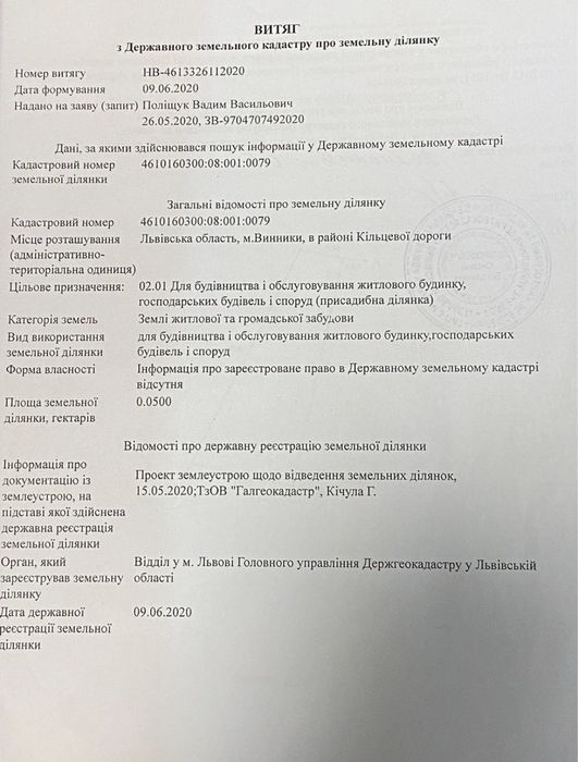 | Земельна ділянка: |