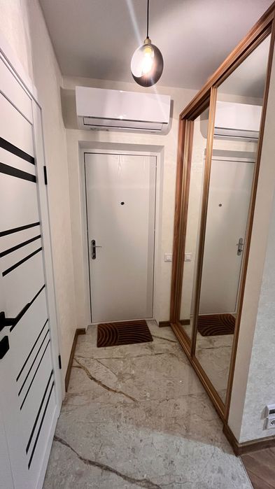 Київський; Продам квартиру, новий ЖК, сучасний ремонт; Продам квартиру - євродвушка (квартира з однією спальною і вітальною, яка об'єднана з кухнею), новий ЖК Via Roma. В квартирі сучасний та якісний ремонт, встановлена вся нова техніка, тепла підлога, панорамні вікна. Квартира продається з меблями та технікою за виключенням телевізорів. Квартира тепла, не кутова, сусіди поряд вже живуть, ремонтні роботи завершені. ЖК має просторий двір без авто, підземний паркінг, виконаний ландшафтний дизайн, встановлений великий дитячий майданчик та генератор. На території ЖК: магазини, кафе, приватний дитячий садок, салон краси. На авто до моря 10 хв, торгово-розважальний цент Сіті Центр 5 хв. Податки сплачуються 50/50