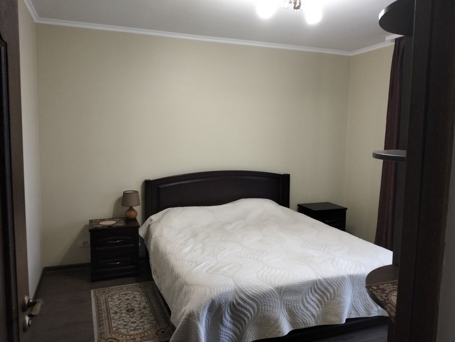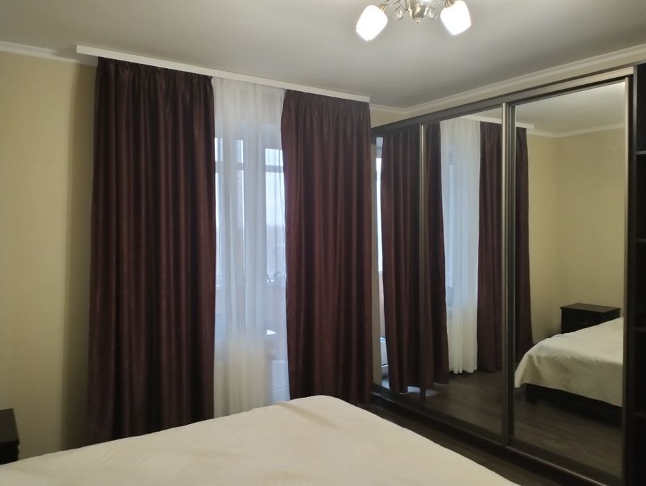 Двері з натурального дерева, 2 шкафи-купе, дерев'яне ліжко з ортопедичним матрасом